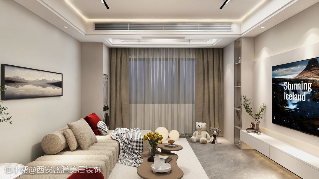 邊框線條:簡潔的乳膠漆做基礎(chǔ),根擾電視墻的比例造型,裝上邊框線條,保持簡約大方的基礎(chǔ),還能增加電視墻的層次美與對稱設(shè)計(jì)感,這也是一種簡約大方的設(shè)計(jì)方案。